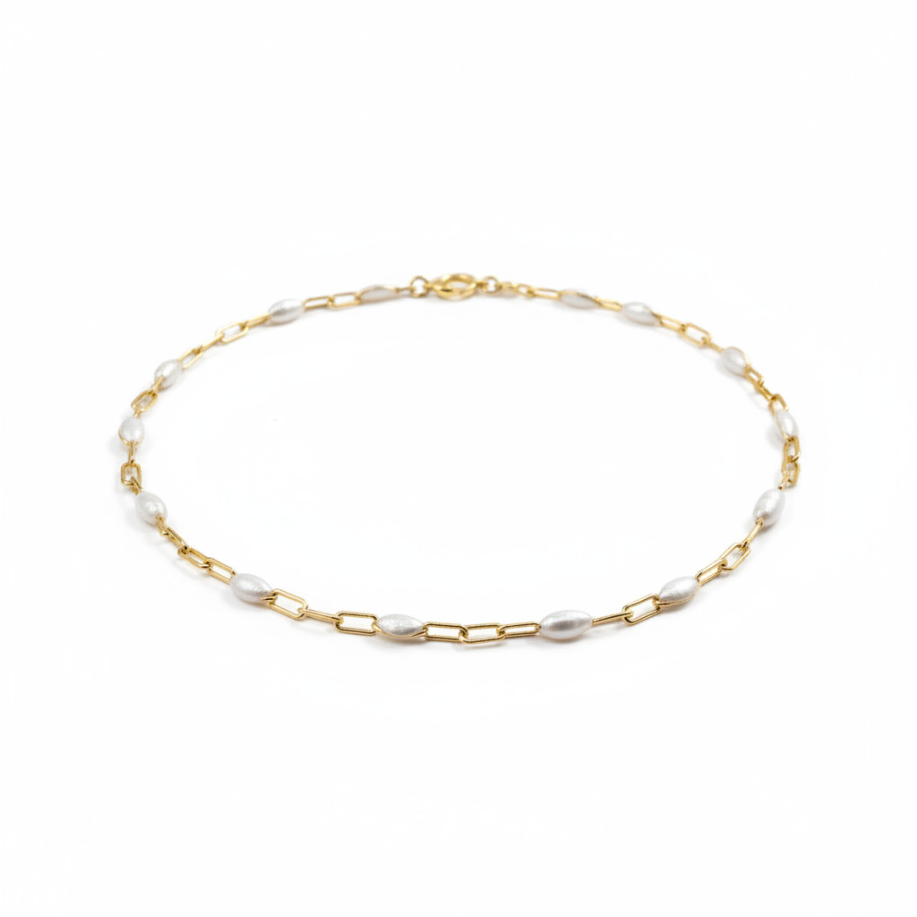 Pearl Enamel Paperclip Anklet