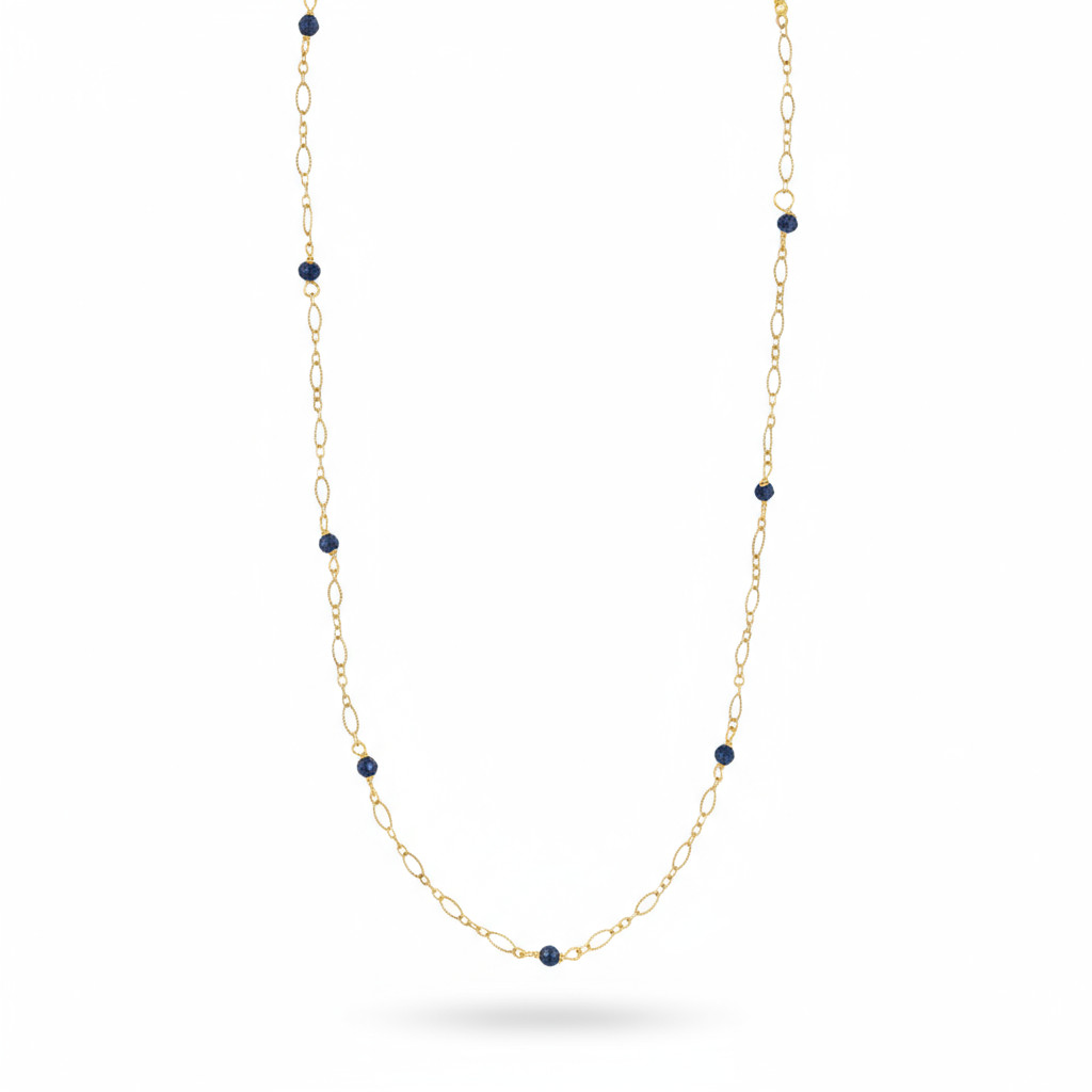 Our Gemstone Filigree Layering Necklace is a Bloom customer favorite and a timeless addition to any collection. Designed to pair beautifully with all your Bloom pieces, it features deep navy blue labradorite gemstones hand-wrapped in 14k gold-filled wire, findings and chain creating a casual yet refined finish that’s perfect for effortless layering.